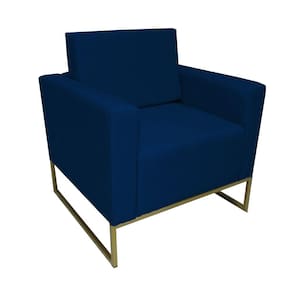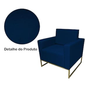 Poltrona Estofada Com Base de Ferro Para Sala de Estar Leticia Pé Ferro Suede Azul Marinho - LM DECOR