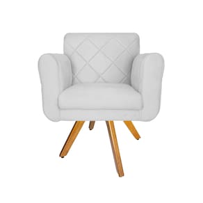 Poltrona Estofada Com Base Giratória De Madeira Sala Isabella Suede Branco - LM DECOR