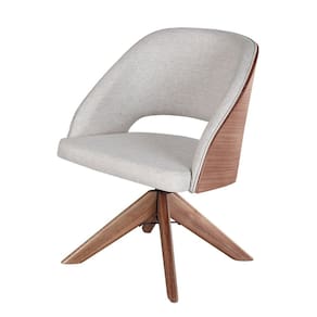Poltrona Estofada com Base Giratória em Madeira Maciça – Prada Exclusiva Linho Palha -