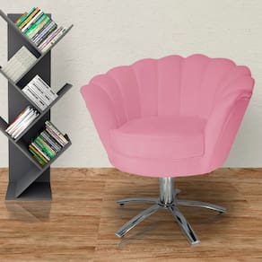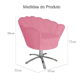 Poltrona Estofada Decorativa 1 Lugar Base Giratória de Metal Pétala Suede Rosa Barbie - LM DECOR