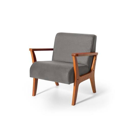 Suabase e braços são confeccionados em Madeira Maciça Lyptus Grandis, proveniente de reflorestamento, com acabamento em selador nogueira fosco. Seu assento e encosto são produzidos em tecidoSuede Veludo, dando umtoque suave e macio ao móvel, com espuma certificada densidade (D28) e percinta elástica, matérias-primas que garantem maiorresistência e durabilidade ao produto. Além de contar comsapatas plásticas, ideal para a proteção do piso contra riscos.