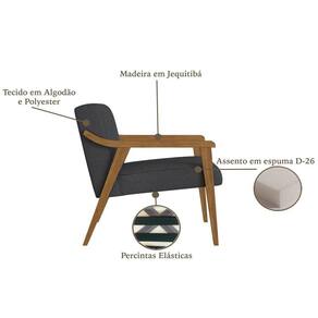 Poltrona estofada revestida com tecido de alta qualidade, assento com persintas elásticas, espuma de densidade 26, pés em madeira de lei jequitibá. Uma poltrona que se destaca em qualquer ambiente, deixando-o muito estiloso e aconchegante. Acompanha Almofadas extras: Não Acompanha Puff: Não Almofada do assento: Fixa Almofada do encosto: Fixa Altura do assento até o chão: 43 cm Altura do Encosto: 42 cm Ambiente Principal: Sala de Estar Cor: Nogueira/Cinza Cor do Produto: Nogueira/Cinza Design Assinado: Não Enchimento do Assento: Espuma D-26 Enchimento do Braço: Não Possui Enchimento do Encosto: Espuma D-23 Encosto para a Cabeça: Não Estampado: Não Extensível: Não Firmeza do Assento: Médio Itens Inclusos: 1 Poltrona Linha ou Coleção: Volttoni Material do Braço: Madeira maciça de jequitibá Material dos Pés: Madeira Modelo de Poltrona: Fixo Necessita Montagem: Não Origem do Produto: Nacional Peso: 14 kg Possui Percintas Elásticas: Sim Possui Pés: 04 Possui Rodízio: Não Recomendações de Uso, Manutenção e Limpeza: Limpar com pano umedecido. Suporta Até (kg): 100 kg Tecido Predominante: Algodão Tipo de Assento: Fixo Tipo de Encosto: Fixo Tipo de Espuma do Assento: Espuma Convencional Tipo de Poltrona: Decorativa