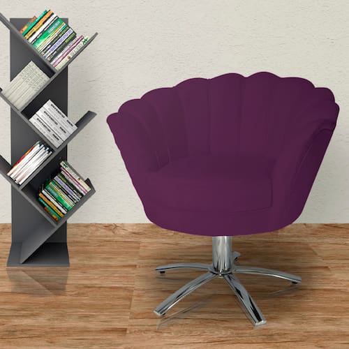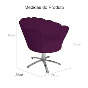 Poltrona Estofada Hall de Entrada Base Giratória de Metal Pétala Veludo Roxo - LM DECOR
