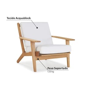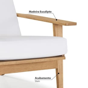 Características - Jatobá - Estrutura: Madeira Eucalipto - Acabamento: Stain - Encosto e assento estofado com almofadas em Acquabloc - Para uma maior durabilidade do móvel o ideal é que o mesmo seja utilizado em área coberta - Indicamos que o acabamento seja renovado ao menos uma vez ao ano (O material de pintura é encontrado em qualquer loja de tintas ) - Peso suportado de 120 kg - Móvel entregue montado - Marca: Casatema