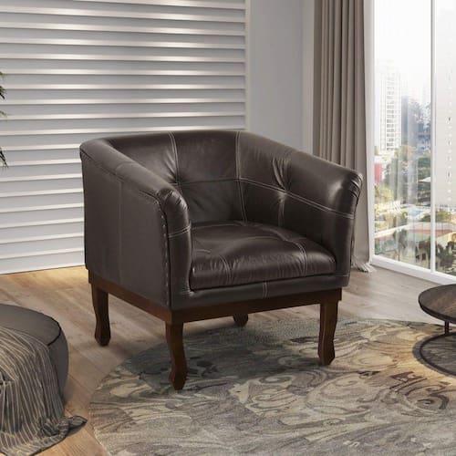 +Poltrona+Decorativa+Noah+%E9+de+alta+qualidade+com+estrutura+em+madeira+reflorestada%2C+espuma+de+qualidade%2C+revestida+em+couro+100%25+natural%2C+garantindo+resist%EAncia%2C+conforto+e+durabilidade%2C+com+base+de+madeira%2C+p%E9s+estilo+Luiz+XV%2C+dando+ao+seu+ambiente+um+ar+de+sofistica%E7%E3o+e+requinte. Acompanha Almofadas extras: Não Almofada do assento: Fixa Almofada do encosto: Fixa Altura: 76 cm Altura do assento até o chão: 43 cm Altura do Encosto: 37 cm Ambiente: Sala de Estar Cr: Marrom Cr: Marrom Enchimento do Assento: Espuma D-26 Enchimento do Braço: Espuma D-26 Enchimento do Encosto: Espuma D-26 Encosto para a Cabeça: Não Estampado: Não Extensível: Não Firmeza do Assento: Médio Giratória: Não Informações Complementares: Pespontada e com tachas nas laterais Itens Inclusos: 1 Poltrona Largura: 78 cm Material da Estrutura: Madeira Maciça Material do Braço: Madeira e Espuma Material dos Pés: Madeira Necessita Montagem: Não Peso: 15 kg Possui Apoio para Braços: Sim Possui Percintas Elásticas: Sim Possui Pés: 04 Possui Rodízio: Não Profundidade: 75 cm Reclinável: Não Recomendações de Uso, Manutenção e Limpeza: Utilize pano úmido sabão neutro Retrátil: Não Revestimento: Couro Legítimo Suporta Até (kg): 120 kg Tipo de Assento: Fixo Tipo de Encosto: Fixo Tipo de Madeira Maciça da Estrutura: Eucalipto