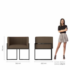 Detalhes Técnicos das Poltronas - Assento e Encosto Tapeçados, Estofados e Fixos - Espuma do Assento e do Encosto: D20 - Tonalidade: Preto Fosco (estrutura)/Suede Marrom (estofado) - Material: Metalon - Medida Poltrona: A: 75CM x L: 76CM x P: 60,5CM - Medida do chão até o assento: 48,5cm de altura - Poltrona suporta até 120KG - Montagem: Difícil