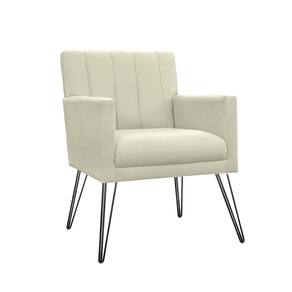 Poltrona Estofada Para Hall de Entrada com Pés de Ferro Cecília Corano Bege - LM DECOR