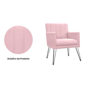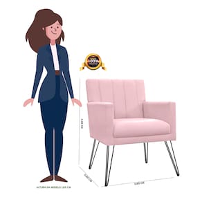 Poltrona Estofada Para Hall de Entrada com Pés de Ferro Cecília Corano Rosa Bebe - LM DECOR
