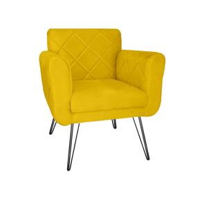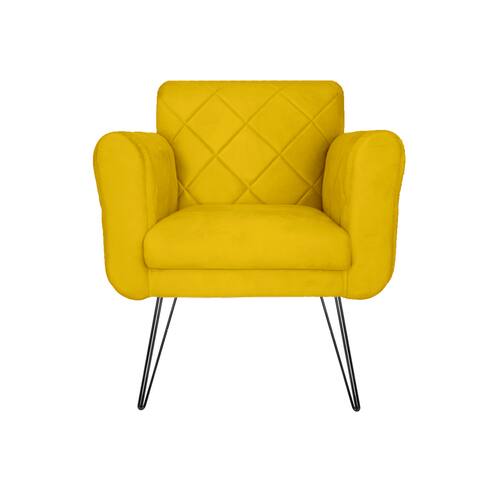 Poltrona Estofada Para Hall de Entrada Com Pés de Ferro Isabella Suede Amarelo - LM DECOR