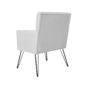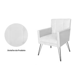 Poltrona Estofada Para Sala Comercial Pés de Ferro Onix Corano Branco - LM DECOR