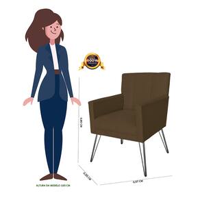 Poltrona Estofada Para Sala Comercial Pés de Ferro Onix Corano Marrom - LM DECOR
