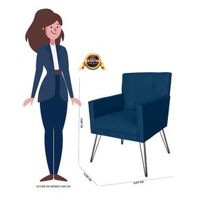 Poltrona Estofada Para Sala Comercial Pés de Ferro Onix Suede Azul Marinho - LM DECOR