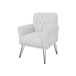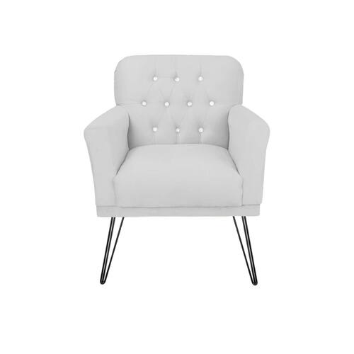 Poltrona Estofada Para Salão de Beleza Pés de Ferro Anitta Suede Branco - LM DECOR