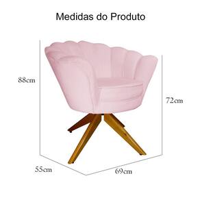 Poltrona Estofada Sala de Estar Base Giratória de Madeira Pétala Suede Rosa Bebe - LM DECOR