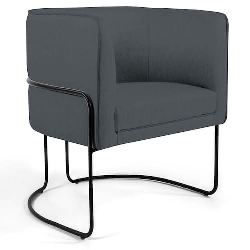A Poltrona Decorativa Fixa Base de Aço Preto Betina D02 Corano Cinza C-03 - Lyam Decor exala formosura e elegância! Excelente opção para dispor em sua sala de estar ou espera, recepção, hall de entrada, dormitório, qualquer área de circulação ou antessala entre um cômodo e outro, as possibilidades de combinação são infinitas. Seu protagonismo é notório, sem sombra de dúvidas é perfeita para qualquer ambientação que desejar colocá-la.