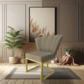 A Cadeira Poltrona Flor em veludo é uma peça que une estilo e conforto de maneira única. Seu revestimento em veludo proporciona um toque suave e elegante, enquanto a Base Metálica confere um charme adicional ao design da poltrona.