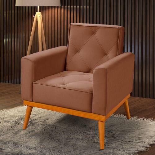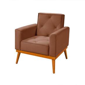 Poltrona Florença Base em Madeira Maciça Veludo Canela - Marrom