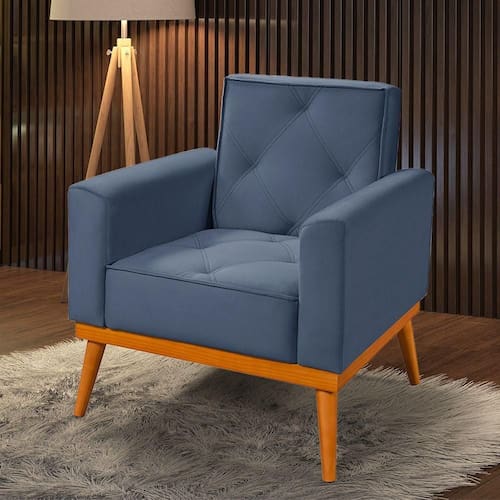 AS IMAGENS SÃO MERAMENTE ILUSTRATIVAS E PODEM SOFRER VARIAÇÕES DE COR E PEQUENOS DETALHES DE ACORDO COM O SEU MONITOR, ILUMINAÇÃO DO AMBIENTE E ATÉ MESMO A SUA PERCEPÇÃO VISUAL.Poltrona FlorenÃa Veludo Denin