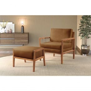 Poltrona Gael Luxo Madeira Maciça Castellar Móbile Corino Caramelo Corino Caramelo - Marrom