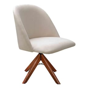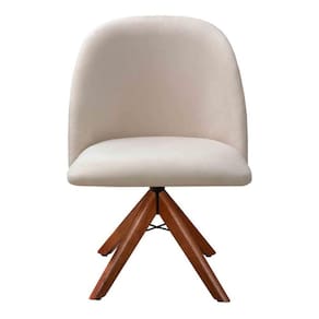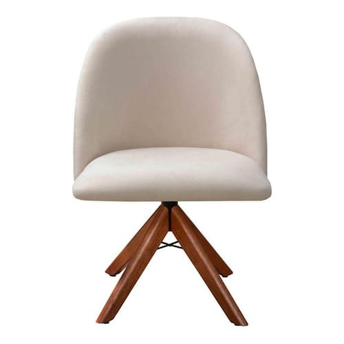 Poltrona Gaia Cadeira Giratória Pé Madeira Decoração Moderna Recepção Escritório - Bege Claro
