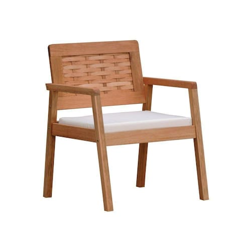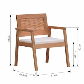 - Materiais: Estrutura em madeira de eucalipto maciço, encosto em madeira trançada e assento estofado em Tecido Acquablock