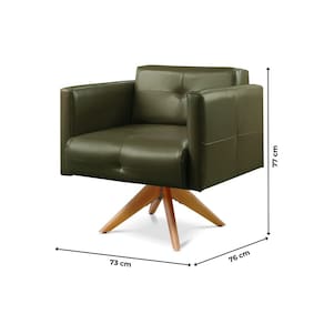 Transforme seu ambiente com a poltrona Angra, perfeita para áreas comerciais ou salas de estar elegantes. Revestimento em couro sintético de alta qualidade, está peça combina durabilidade com estilo moderno. Sua estrutura robusta é feita em eucalipto e pés em madeira seca e tratada, garantindo resistência e durabilidade superiores. O assento acolchoado em espuma D28 e ergonômico proporciona conforto excepcional, enquanto o mecanismo giratório de 360 graus oferece praticidade e mobilidade. Sua estrutura é ideal para recepções, escritórios ou até mesmo para complementar a decoração da sua sala, esta poltrona une funcionalidade e design em um só produto. Acompanha Almofadas extras: Não Acompanha Puff: Não Almofada do assento: Não Possui Almofada do encosto: Fixa Altura do assento até o chão: 47 cm Altura do Encosto: 30 cm Ambiente Principal: Sala de Estar Complexidade da Montagem: Baixa: pode ser montado por uma pessoa sozinha Cor: Verde Cor do Produto: Verde Design Assinado: Não Enchimento do Braço: Espuma D-28 Enchimento do Encosto: Espuma D-28 Encosto para a Cabeça: Não Estampado: Não Extensível: Não Itens Inclusos: 1 poltrona angra, parafusos e manual de montagem Linha ou Coleção: Angra Manual de Montagem e Instalação: https://product-hub-prd.madeiramadeira.com.br/931252/documents/da4e6188-7c6b-4dac-9a11-971a8e8606922272737518817248749594479.pdf Material do Braço: Couro sintético Material dos Pés: Madeira seca e tratada Modelo de Poltrona: Giratório Necessita Montagem: Sim Origem do Produto: Nacional Peso: 15 kg Possui Percintas Elásticas: Não Possui Pés: 01 Possui Rodízio: Não Recomendações de Uso, Manutenção e Limpeza: Utilizar aspirador de pó, escova com cerdas macias ou limpeza a seco. Não utilizar produtos químicos, abrasivos ou limpeza a vapor. Evitar exposição prolongada ao sol. Sistema de Montagem: Parafusos Suporta Até (kg): 120 kg Tecido Predominante: Couro Sintético Tipo de Assento: Fixo Tipo de Encosto: Fixo Tipo de Espuma do Encosto: Espuma Convencional Tipo de Poltrona: Decorativa Marca: Zurc Decor