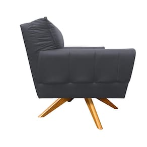 Poltrona Giratória Anitta Corino Base Madeira D'Rossi