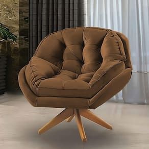 A versatilidade dessa poltrona é destacada pela base giratória, proporcionando mobilidade e praticidade ao ambiente. Seus detalhes cuidadosamente pensados, como costuras decorativas e a harmonia entre o veludo e a madeira, conferem um visual contemporâneo e acolhedor.