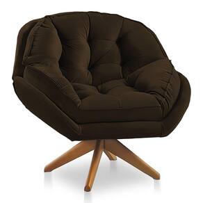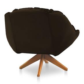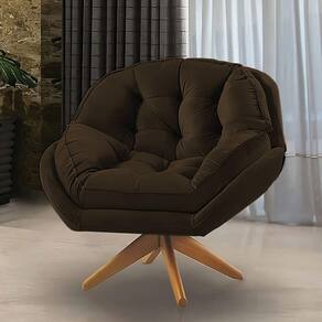 A versatilidade dessa poltrona é destacada pela base giratória, proporcionando mobilidade e praticidade ao ambiente. Seus detalhes cuidadosamente pensados, como costuras decorativas e a harmonia entre o veludo e a madeira, conferem um visual contemporâneo e acolhedor.