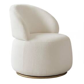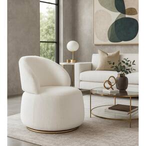 Poltrona Giratória com Base Dourada em Aço Carbono Bella - Exclusiva Bouclé Off White -
