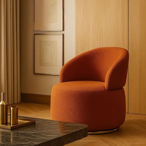 Poltrona Giratória com Base Dourada em Aço Carbono Bella - Exclusiva Boulclè Terracota -