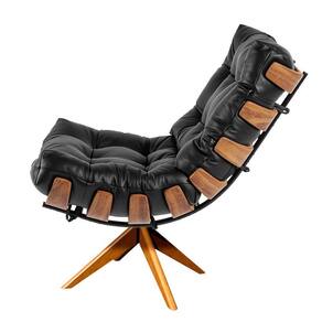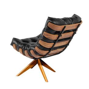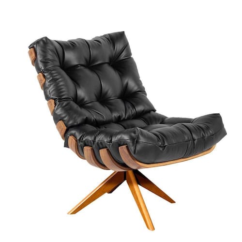 Poltrona Giratória Costela Couro Legítimo Base Madeira MA25 - DRossi