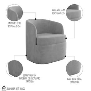 Sinônimo de elegância e bom-gosto, a Poltrona Giratória Decorativa para Sala Dandara K04 Veludo Cinza, da Mpozenato, vai elevar o estilo decorativo da sua sala de estar ou living.