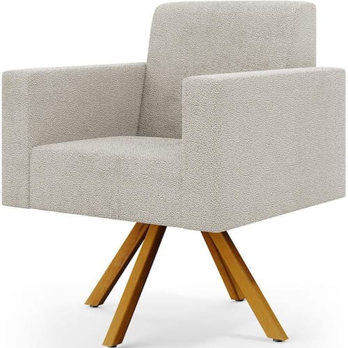 Se você está buscando por qualidade e conforto unidos em um único produto, a Poltrona Giratória Sala de Estar Base de Madeira Helô L02 Bouclê Creme - Lyam Decor vem para superar todas as suas expectativas! Extremamente sofisticada, conta com base giratória de madeira na cor castanho que conversa super bem com seu revestimento de acabamento impecável, transmitindo requinte para o restante da decoração.