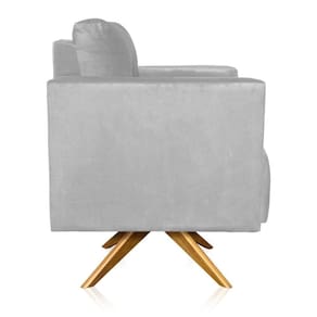 Poltrona Giratória Livia Suede Base De Madeira Ma30 Cor Cinza