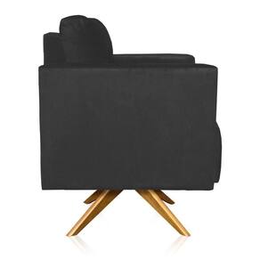 Poltrona Giratória Livia Suede Base De Madeira Ma30 - D`rossi Cor Grafite - Cinza