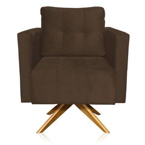 Poltrona Giratória Livia Suede Base de Madeira MA30 - D`Rossi - Marrom Cacau