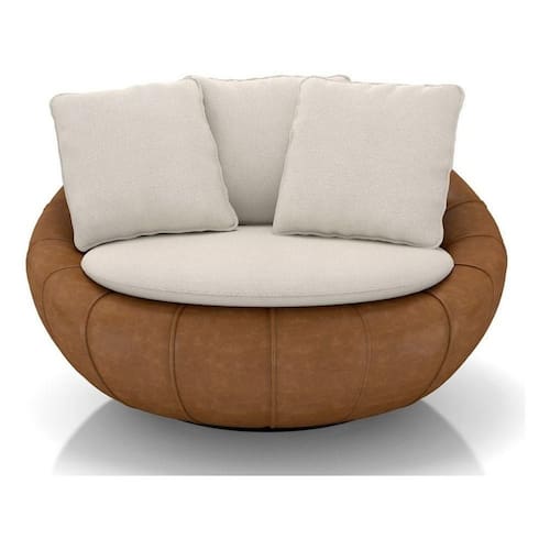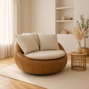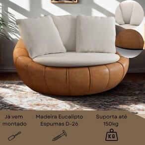 Seu revestimento em linho Compose bege transmite leveza e sofisticação, enquanto a base em courino caramelo oferece um contraste visual quente e atual, ideal para ambientes integrados e bem iluminados. A estrutura arredondada promove uma sensação de acolhimento imediato quase como um ninho de tranquilidade no seu living.