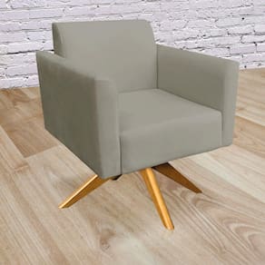 Poltrona Giratória Marisa Suede Marrom Rato Base de Madeira D'Rossi