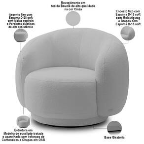 Altura: 78 cm | Color: Cinza | ColorFamily: Cinza | ColorSimple: Cinza | ColorSupplier: Cinza | Cor: Cinza | Cor dos pés: NA | Densidade da espuma do assento: Assento fixo com espuma D-28 soft. | Desenho do tecido: Liso | Estilo: Minimalista | Fabricante: Lyam Decor | Formato do sofá: NA | Largura: 95 cm | Linha: Sala de Estar | Material: Madeira, Espuma e Tecido | Material de enchimento do encosto: Encosto fixo com espuma D-18 soft, mola zig zag e percintas elásticas. | Material do estofamento: Bouclê | MaterialFamily: Madeira, Espuma e Tecido | Mecanismo de abertura do produto: na | Model: Elodie | Orientação do Sofá: na | OriginCountry: | OriginState: PR | Peso: 35 kg | Peso máximo suportado: 120 kg | ProductContents: Poltrona | ProductHeight: 78 cm | ProductInstructions: Produto para uso residencial em ambiente interno, não devendo ficar exposto diretamente ao sol, calo | ProductLength: 89 cm | ProductWarranty: 90 dias após o do produto | ProductWeight: 35 kg | ProductWidth: 95 cm | Profundidade: 89 cm | Quantidade de Caixas de embalagem: 1 | Requer montagem: Não | SizeDescription: Altura: 78cm x Largura: 95cm x Profundidade: 89cm | SupplierSimpleName: Poltrona Giratória Orgânica Para Sala Living Elodie M05 Bouclê Cinza - Lyam Decor | Tipo de produto: Poltrona | Unidades por kit: 1