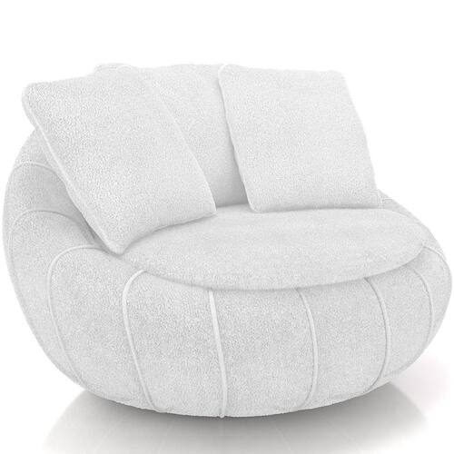 Poltrona Giratória Para Sala de Estar Decorativa Kira M03 Bouclê Branco - Lyam Decor