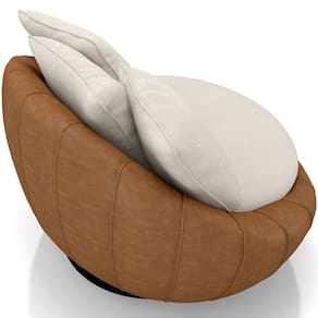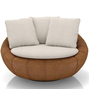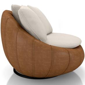 SupplierSimpleName: Poltrona Giratória Para Sala de Estar Decorativa Kira M03 Couríssimo Whisky Linho Cru - Lyam Decor