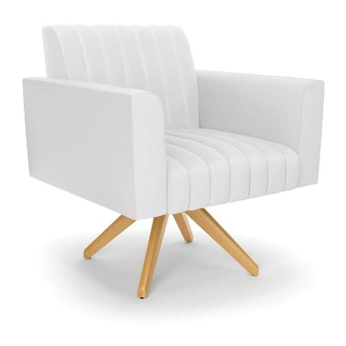 Poltrona Giratória Viena Gomada Corino Base De Madeira Ma30 - D'rossi Cor Branco Quer uma decoração única e sofisticada? A Poltrona Viena é ideal para quem está em busca de um móvel versátil e diferenciado. Esse tipo de peça é ideal para ambientes modernos e descontraídos. Vem com uma ideia totalmente diferente, devido sua curva e forma suave, os detalhes gomados do tecido são tendências de decoração atuais. Uma dica legal de complemento é escolher almofadas que combinem com a poltrona. Sua estrutura é confeccionada em madeira de eucalipto proveniente de reflorestamento, o estofamento do assento é composto de espuma prorelax D-23 no encosto, e é revestido em Corino um tecido aconchegante, resistente e extremamente luxuoso. Sua sustentação é dada pela Base Giratória Madeira MA30, suportando em média até 120 Kg. Crie um lindo efeito visual, em qualquer lugar da sua casa ou escritório! Garanta já sua Poltrona Viena. Dimensões da Poltrona: