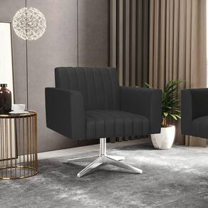 Quer uma decoração única e sofisticada? A Poltrona Viena é ideal para quem está em busca de um móvel versátil e diferenciado. Esse tipo de peça é ideal para ambientes modernos e descontraídos. Vem com uma ideia totalmente diferente, devido sua curva e forma suave, os detalhes gomados do tecido são tendências de decoração atuais. O tom Preto vem ganhando cada vez mais espaço no mercado, uma cor que traz elegância e combina com vários tipos de decoração. Uma dica legal de complemento é escolher almofadas que combinem com a poltrona. Sua estrutura é confeccionada em madeira de eucalipto proveniente de reflorestamento, o estofamento do assento é composto de espuma prorelax D-23 no encosto, e é revestido em Corino um tecido aconchegante, resistente e extremamente luxuoso. Sua sustentação é dada pela Base Giratória Cromada, suportando em média até 120 Kg. Crie um lindo efeito visual, em qualquer lugar da sua casa ou escritório! Garanta já sua Poltrona Viena.