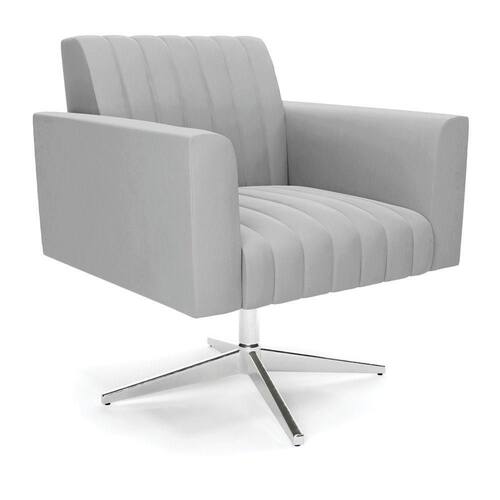 Poltrona Giratória Viena Gomada Suede Cinza Base Cromada - D'rossi Quer uma decoração única e sofisticada? A Poltrona Viena é ideal para quem está em busca de um móvel versátil e diferenciado. Esse tipo de peça é ideal para ambientes modernos e descontraídos. Vem com uma ideia totalmente diferente, devido sua curva e forma suave, os detalhes gomados do tecido são tendências de decoração atuais. O tom Cinza vem ganhando cada vez mais espaço no mercado, uma cor que traz elegância e combina com vários tipos de decoração. Uma dica legal de complemento é escolher almofadas que combinem com a poltrona. Sua estrutura é confeccionada em madeira de eucalipto proveniente de reflorestamento, o estofamento do assento é composto de espuma prorelax D-23 no encosto, e é revestido em Suede um tecido aconchegante, resistente e extremamente luxuoso. Sua sustentação é dada pela Base Giratória Cromada, suportando em média até 120 Kg. Crie um lindo efeito visual, em qualquer lugar da sua casa ou escritório! Garanta já sua Poltrona Viena. Dimensões da Poltrona: