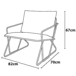 Conta com estrutura em tubos de aço, assento com chapa multilaminada com percintas elásticas e espuma de alta densidade e encosto composto por almofada solta preenchida com fibra de poliéster.
