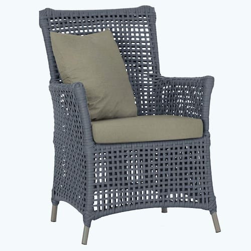 A corda nautica adiciona um toque de rusticidade moderna, enquanto o estofado impermeavel garante que sua poltrona esteja sempre impecavel, mesmo apos uma chuva inesperada ou um acidente com liquidos.