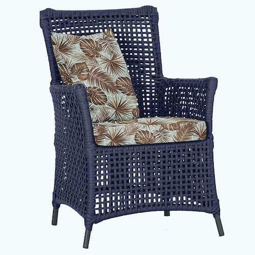 A corda nautica adiciona um toque de rusticidade moderna, enquanto o estofado impermeavel garante que sua poltrona esteja sempre impecavel, mesmo apos uma chuva inesperada ou um acidente com liquidos.