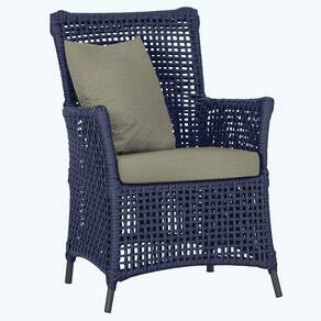 A corda nautica adiciona um toque de rusticidade moderna, enquanto o estofado impermeavel garante que sua poltrona esteja sempre impecavel, mesmo apos uma chuva inesperada ou um acidente com liquidos.