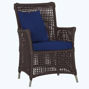A corda nautica adiciona um toque de rusticidade moderna, enquanto o estofado impermeavel garante que sua poltrona esteja sempre impecavel, mesmo apos uma chuva inesperada ou um acidente com liquidos.